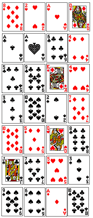 As de trèfles renversé + as de piques renversé + 6 de trèfles + 4 de carreaux